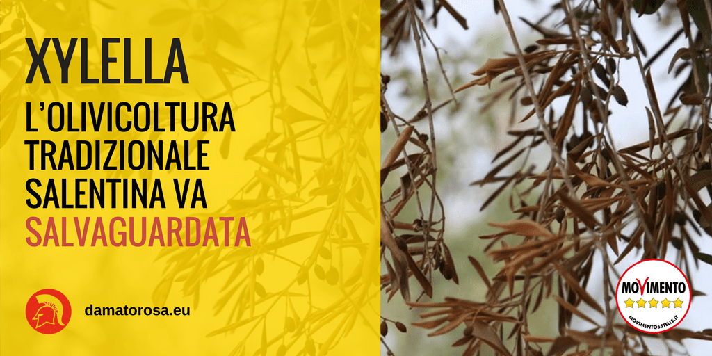 Xylella, D’Amato (M5S): Emiliano si svegli e l’Ue si assuma sue responsabilità. La Puglia non puo’ essere punita per lassismo Regione ed errori di Bruxelles